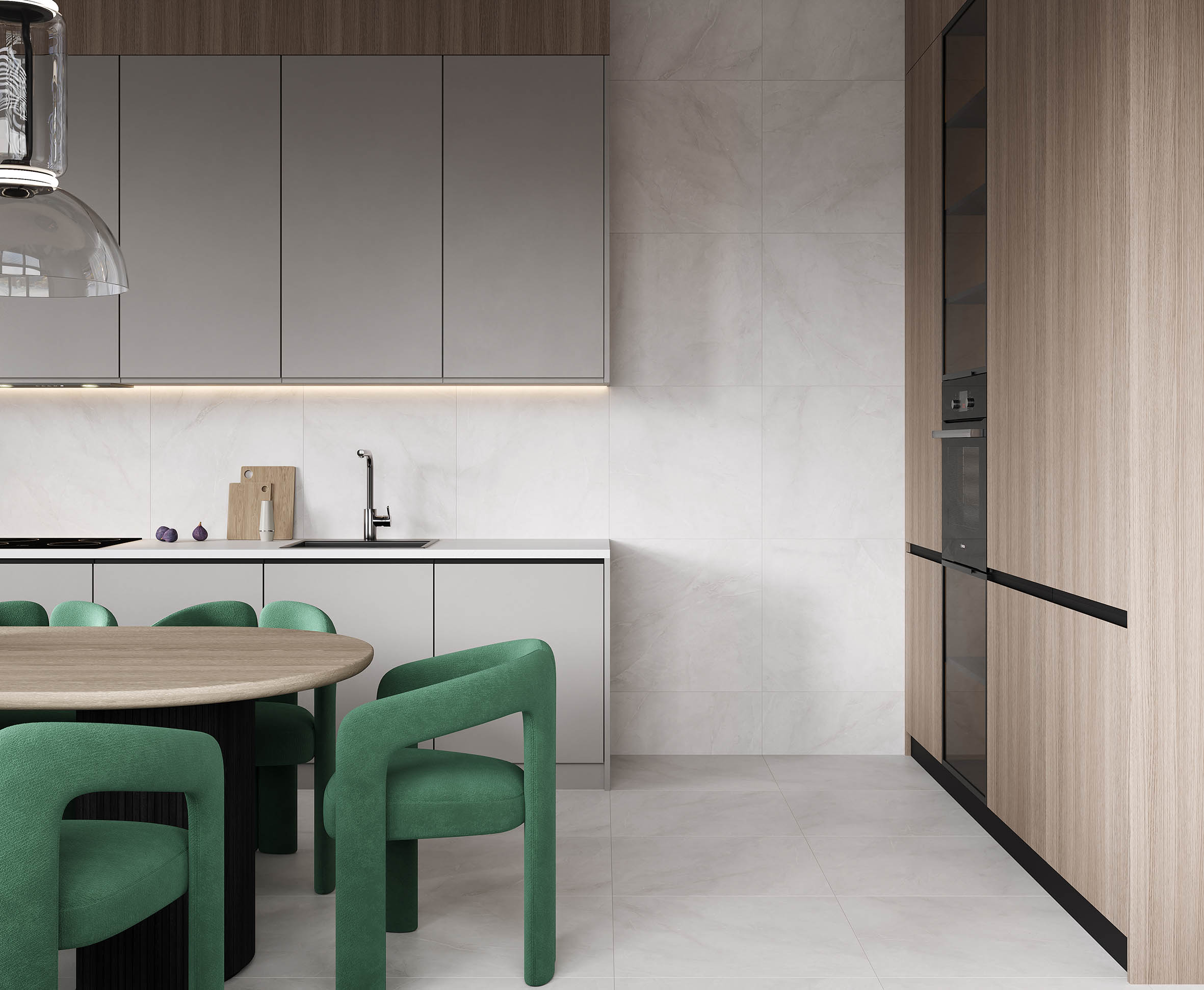 Хоризон Бланко Керамогранит светло-серый 60х120 матовый гравированный